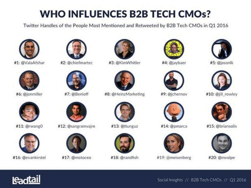 People who consistently make these lists deserve all the recognition they get. They are marketing royalty — from brilliant thinkers like Tom Tunguz to high growth marketing leaders like Meg Eisenberg to the Vala Afshar Twitter bot — Wait, he’s a real person?!? 🙂